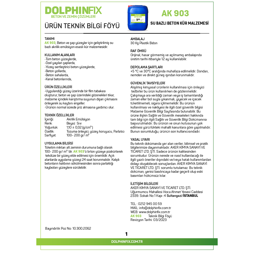 903 AK – SU BAZLI BETON KÜR MALZEMESİ