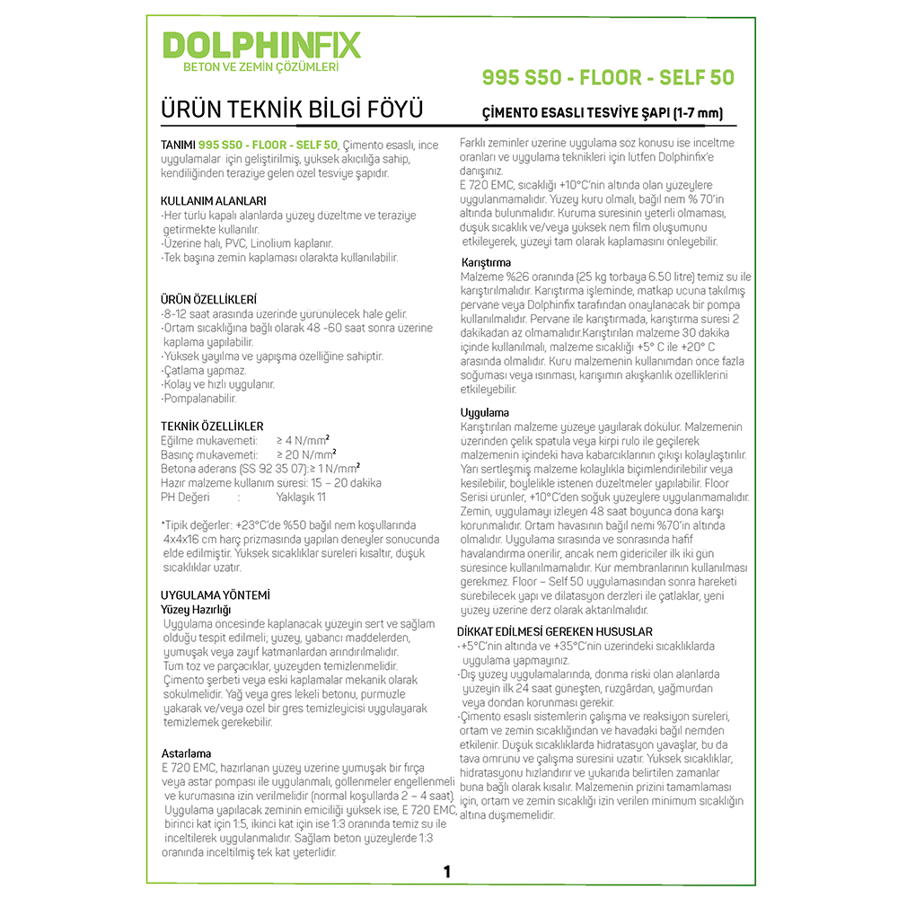 995 S50 – FLOOR – SELF 50 ÇİMENTO ESASLI TESVİYE ŞAPI (1-7 mm)