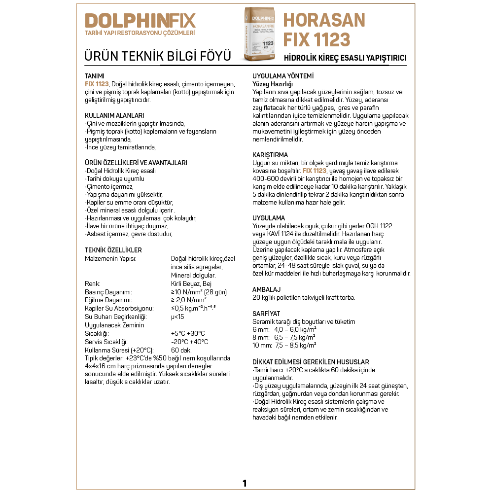 HORASAN FIX 1123 – DOĞAL HİDROLİK KİREÇ ESASLI YAPIŞTIRMA HARCI