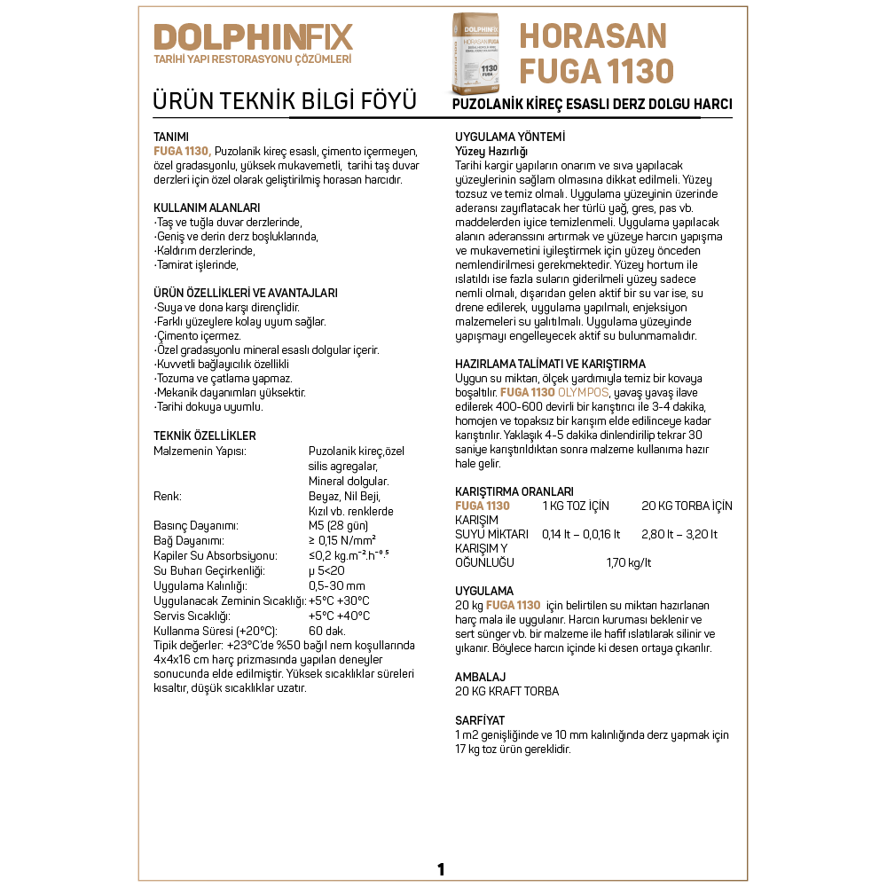 HORASAN 1130 FUGA – DOĞAL HİDROLİK KİREÇ ESASLI DERZ DOLGU HARCI
