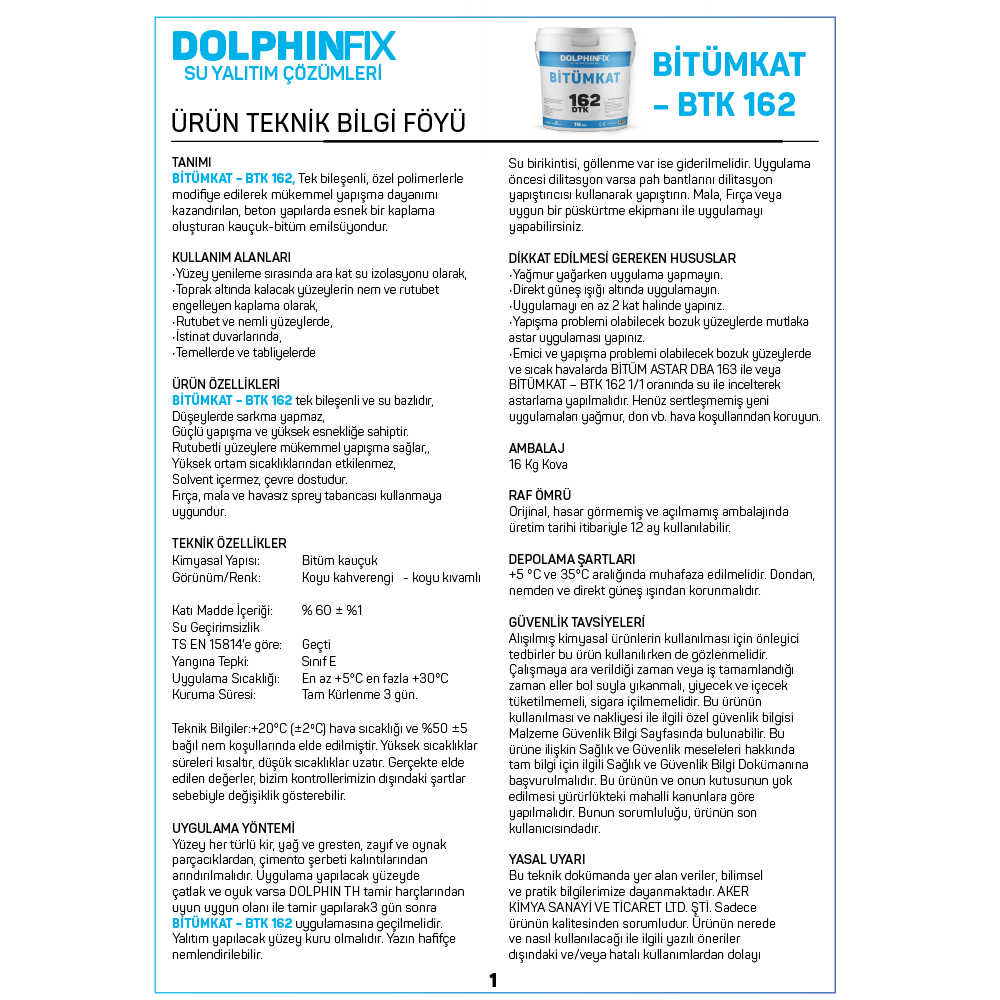 BİTÜMKAT BKT 162 – BİTÜM AKRİLİK ESASLI ESNEK SU YALITIM MALZEMESİ