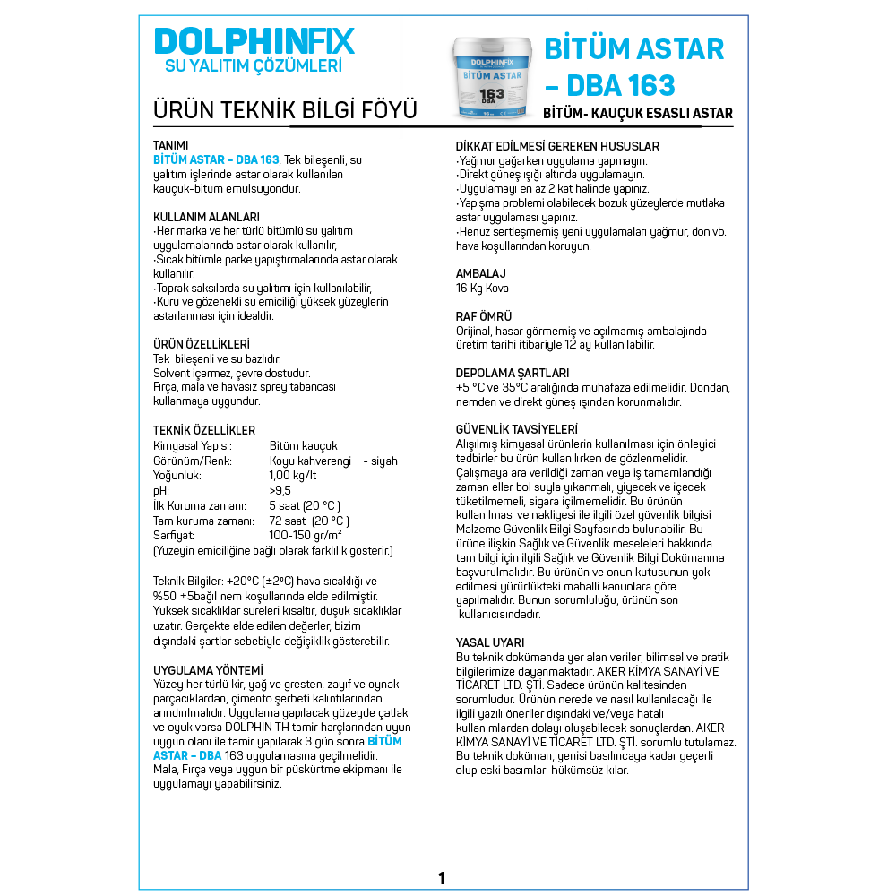 BİTÜM ASTAR DBA 163 – POLİMER MODİFİYE BİTÜM ASTAR