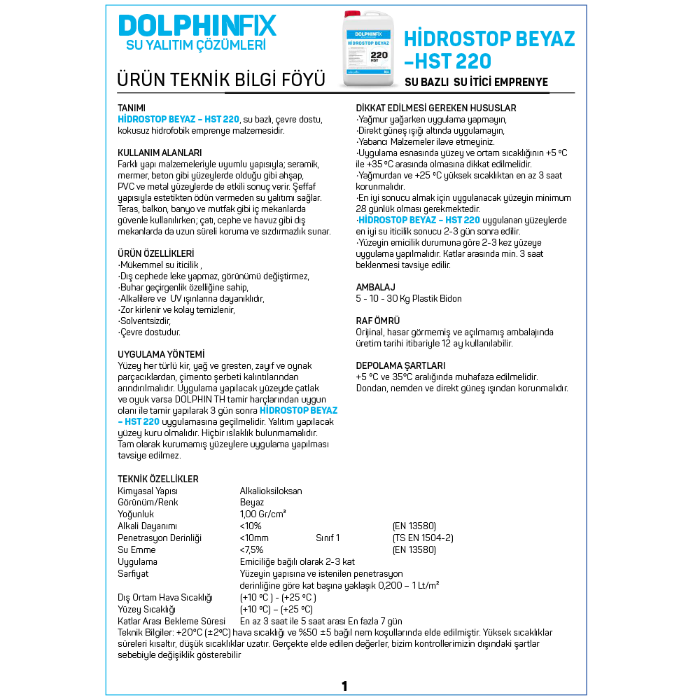HST 220 BEYAZ – HİDROSTOP BEYAZ