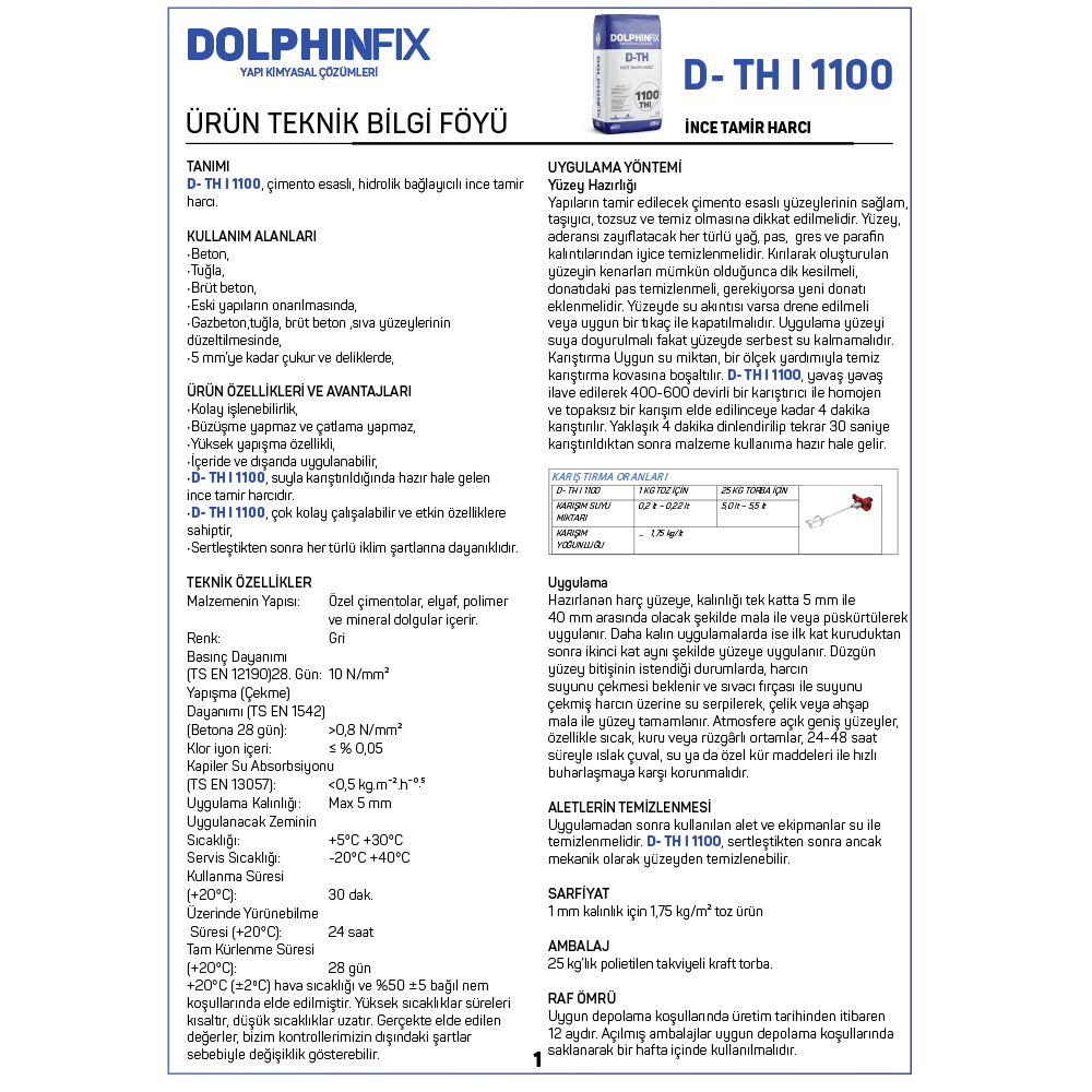 D TH THI 1100 – İNCE TAMİR HARCI