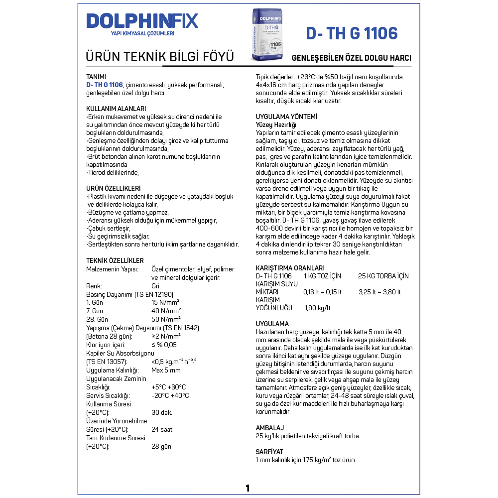 D TH G 1106 – GENLEŞEBİLEN ÖZEL DOLGU HARCI