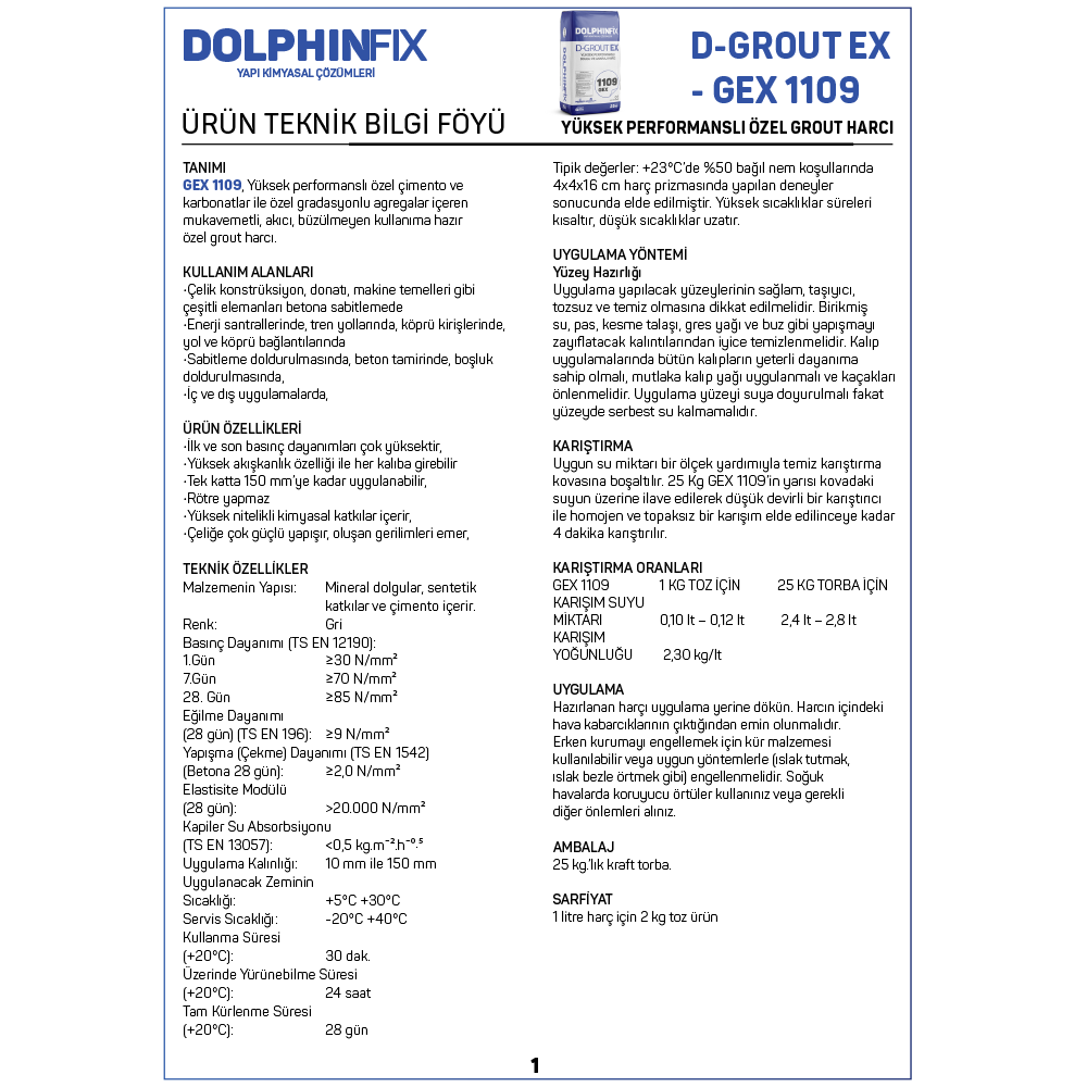 D GROUT EX GEX 1109 – YÜKSEK PERFORMANSLI DOLGU VE ANKRAJ HARCI