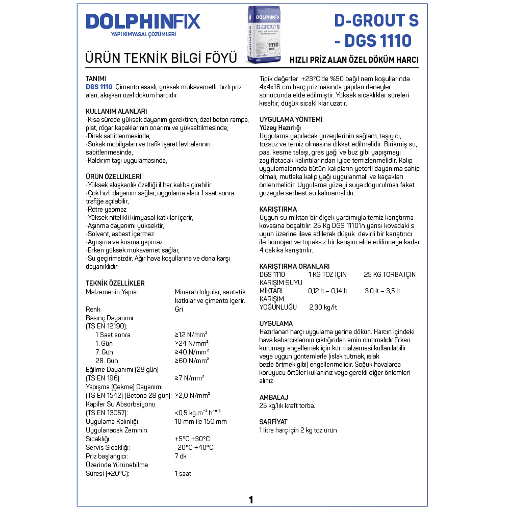 D GROUT S DGS 1110 – HIZLI PRİZ ALAN DOLGU VE ANKRAJ HARCI