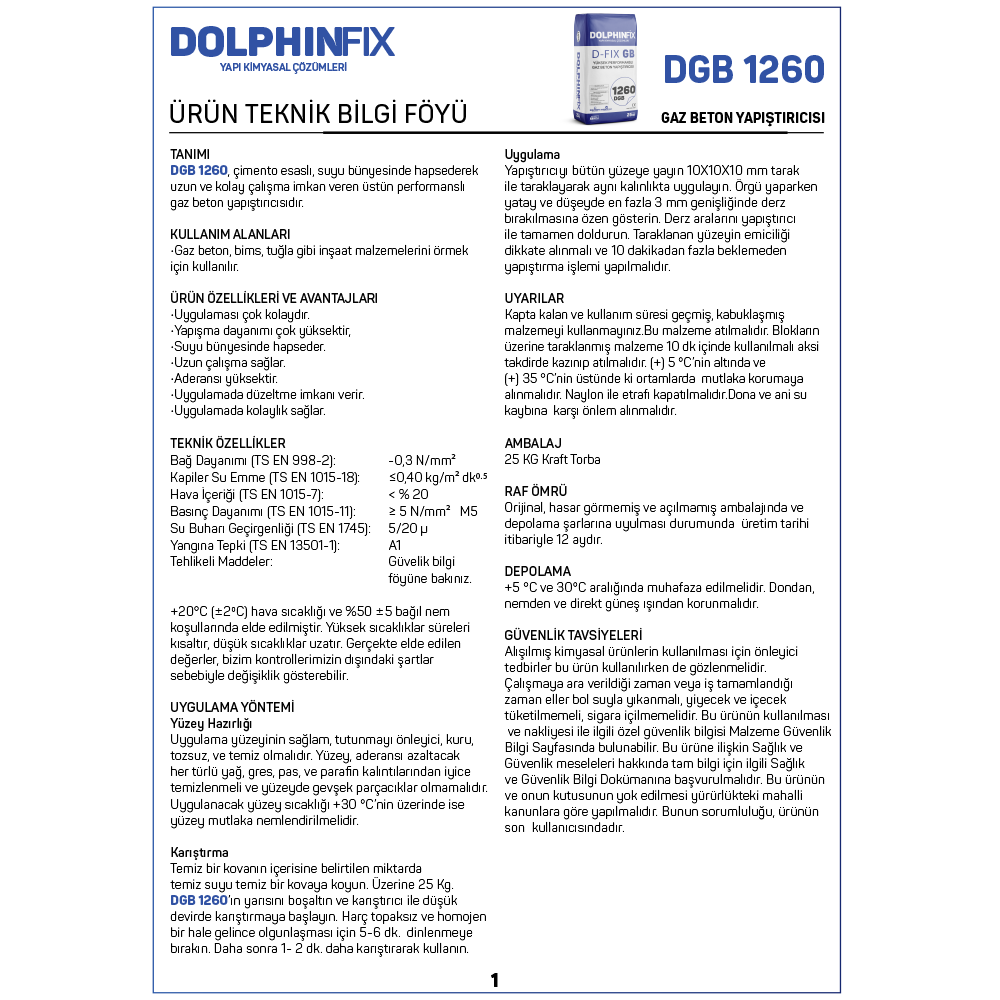 D FIX GB 1260 DGB – YÜKSEK PERFORMANSLI GAZ BETON YAPIŞTIRICISI