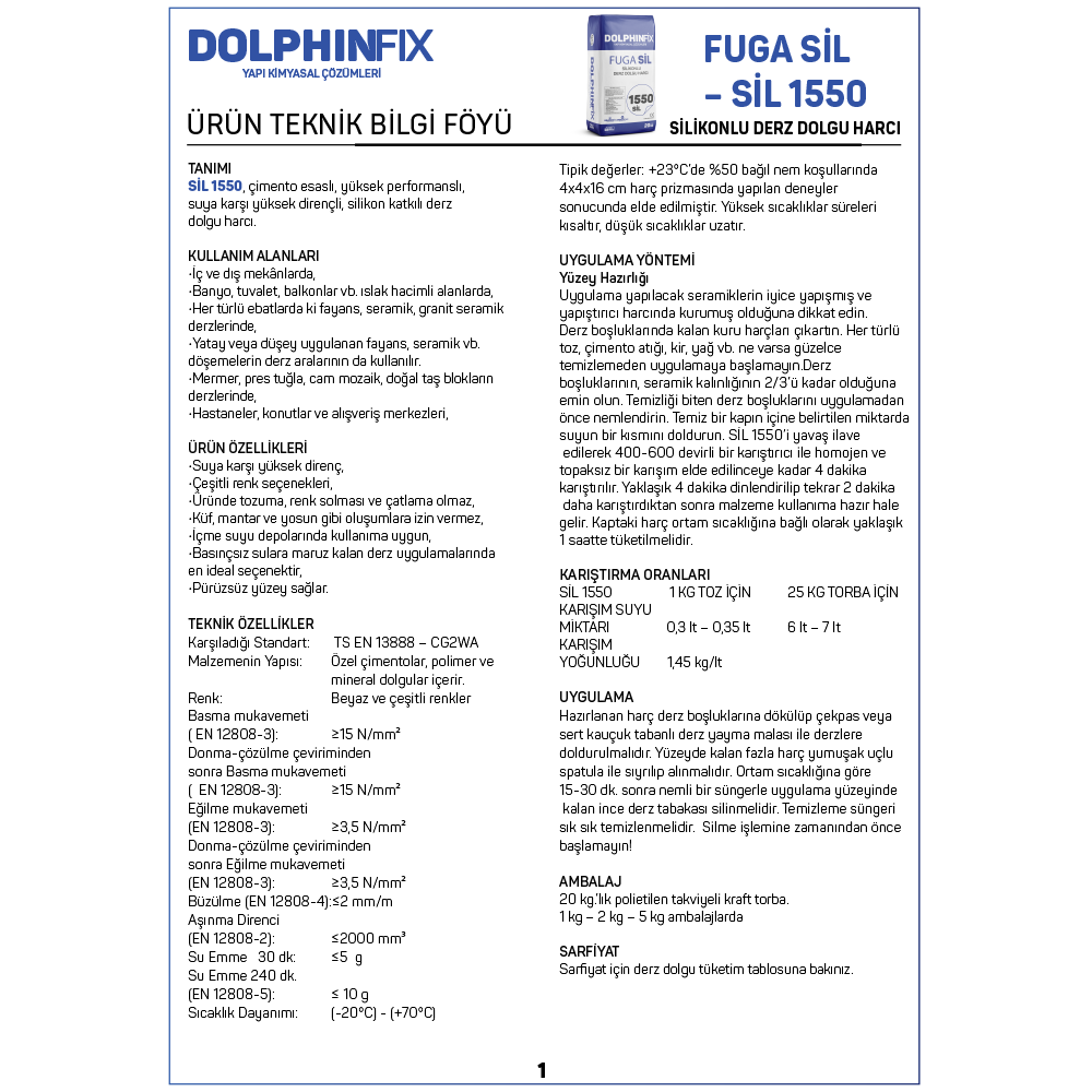 FUGA 1550 SİL – SİLİKONLU DERZ DOLGU HARCI