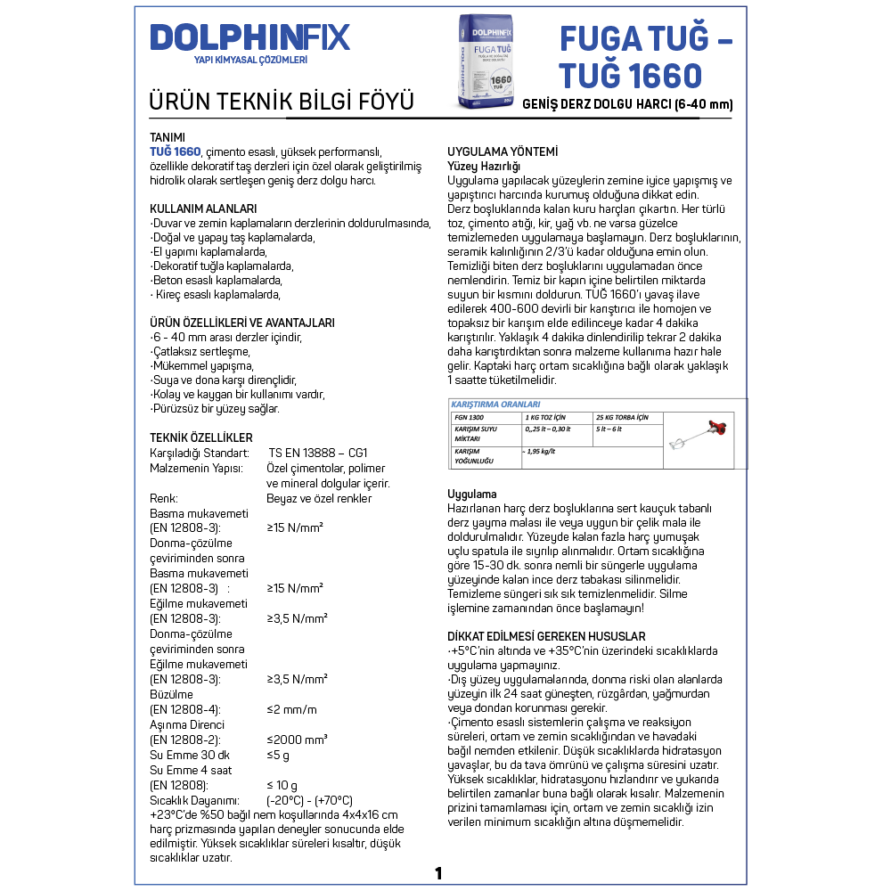 FUGA 1660 TUĞ – TUĞLA VE DOĞAL TAŞ DERZ DOLGU HARCI