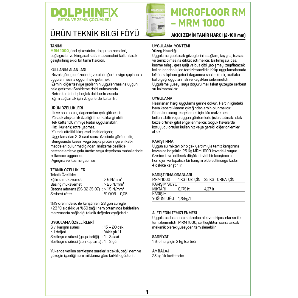 MICROFLOOR RM 1000 MRM – ZEMİN TAMİR HARCI 2-100 MM