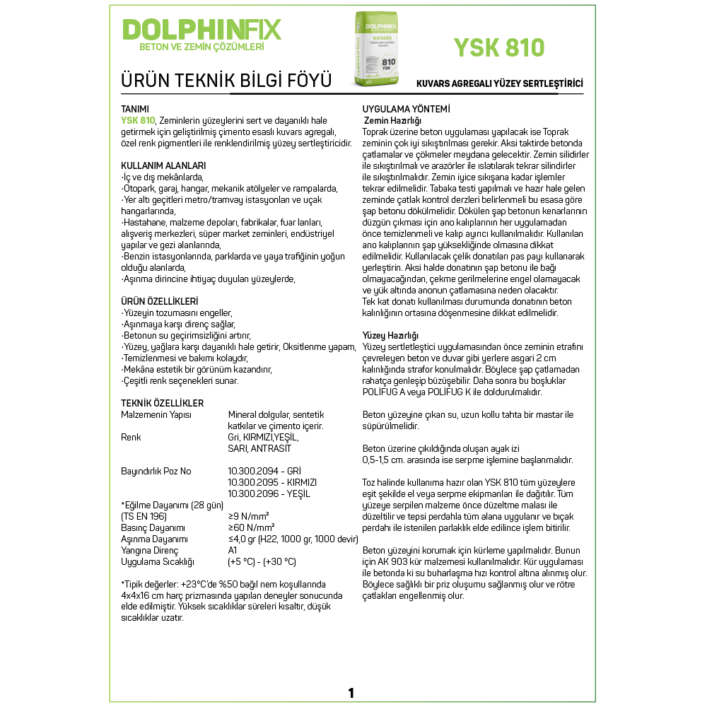 KUVARS YSK 810 – YÜZEY SERTLEŞTİRİCİ KUVARS