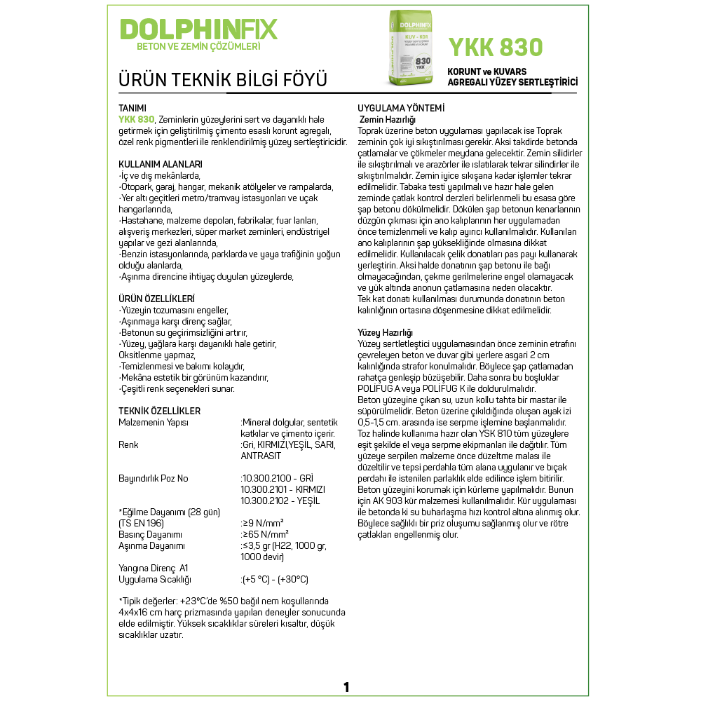 KUV KOR YKK 830 – YÜZEY SERTLEŞTİCİ KUVARS VE KORUNT