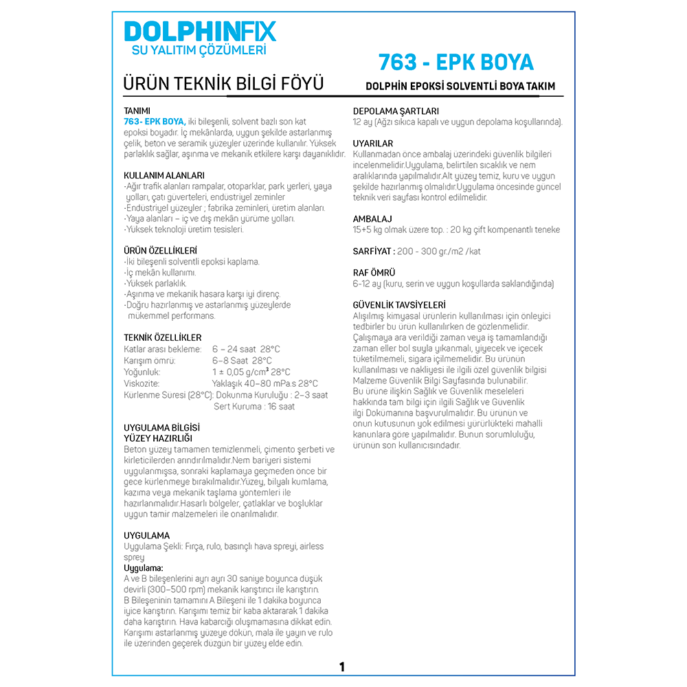 763 – EPK BOYA – DOLPHIN EPOKSI SOLVENTLI BOYA TAKIM