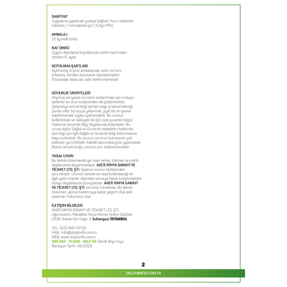 TANIMI : 995 S50 – FLOOR – SELF 50, Çimento esaslı, ince uygulamalar için gelistirilmis, yüksek akıcılıga sahip, kendiliginden teraziye gelen özel tesviye sapıdırLOOR – SELF 50, Çimento esaslı, ince uygulamala için gelistirilmis, yüksek akıcılıga sahip, kendiliginden teraziye gelen özel tesviye sapıdır.
