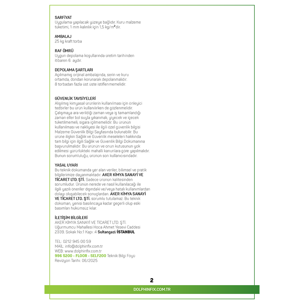 TANIMI: 996 S200 – FLOOR – SELF200 , Çimento esaslı, 20 mm kalınlıkta uygulanabilen, yüksek akıcılıga sahip, kendiliginden teraziye gelen özel tesviye sapıdır.