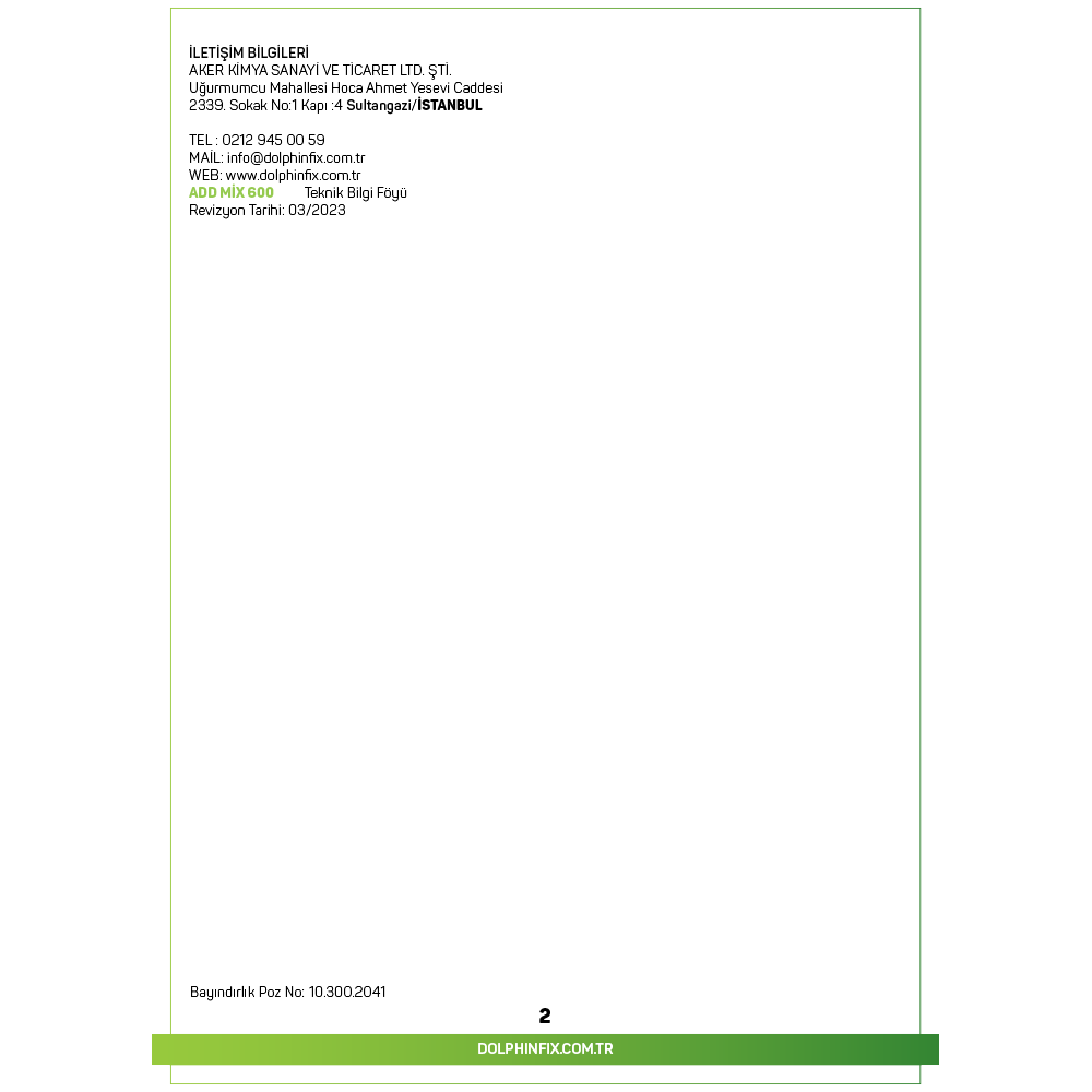 •ADD 600, DOLPHINFİX ürünleriyle uyumludur. Farklı ürünlerle uyumluluğu ispatlamak için ön test gerekmektedir.