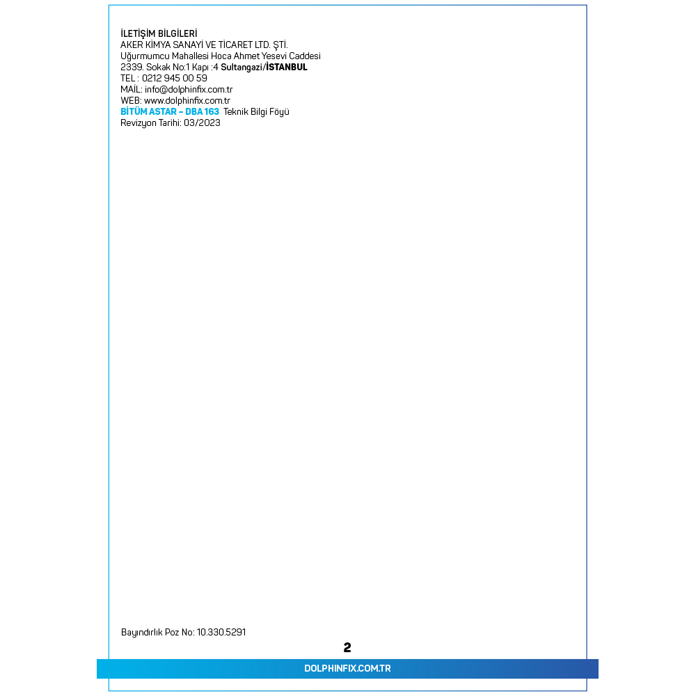TANIMI : BITÜM ASTAR – DBA 163, Tek bilesenli, su yalıtım islerinde astar olarak kullanılan kauçuk-bitüm emülsüyondur.