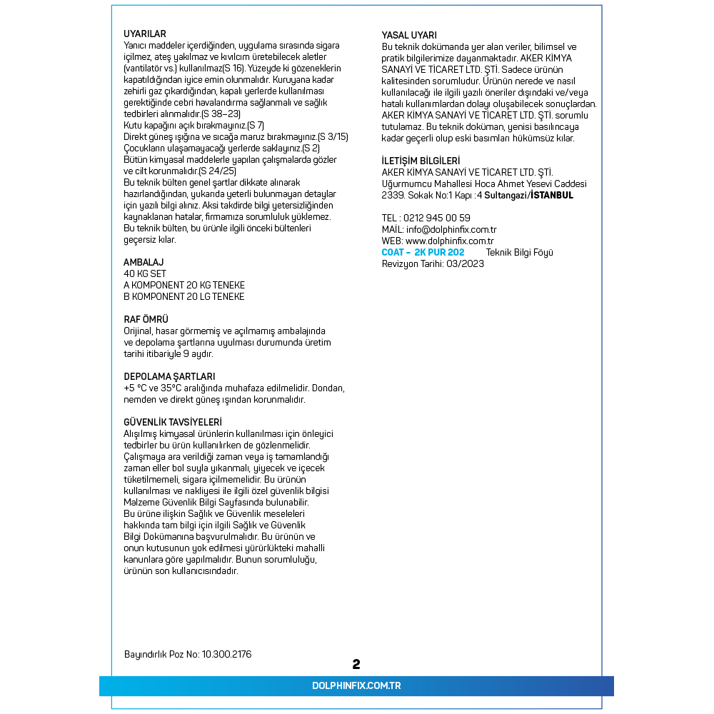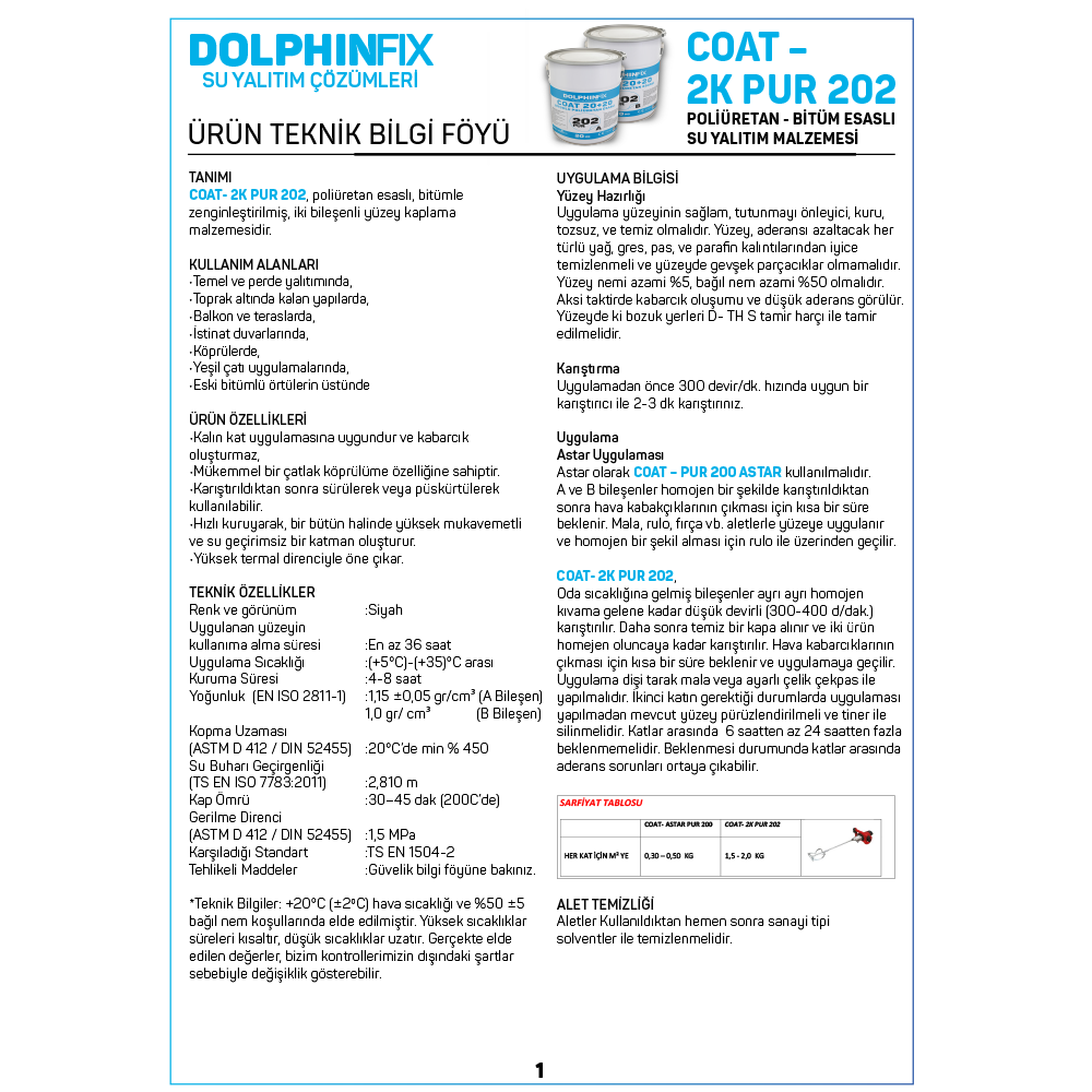 TANIMI: COAT- 2K PUR 202, poliüretan esaslı, bitümle zenginleştirilmiş, iki bileşenli yüzey kaplama malzemesidir.