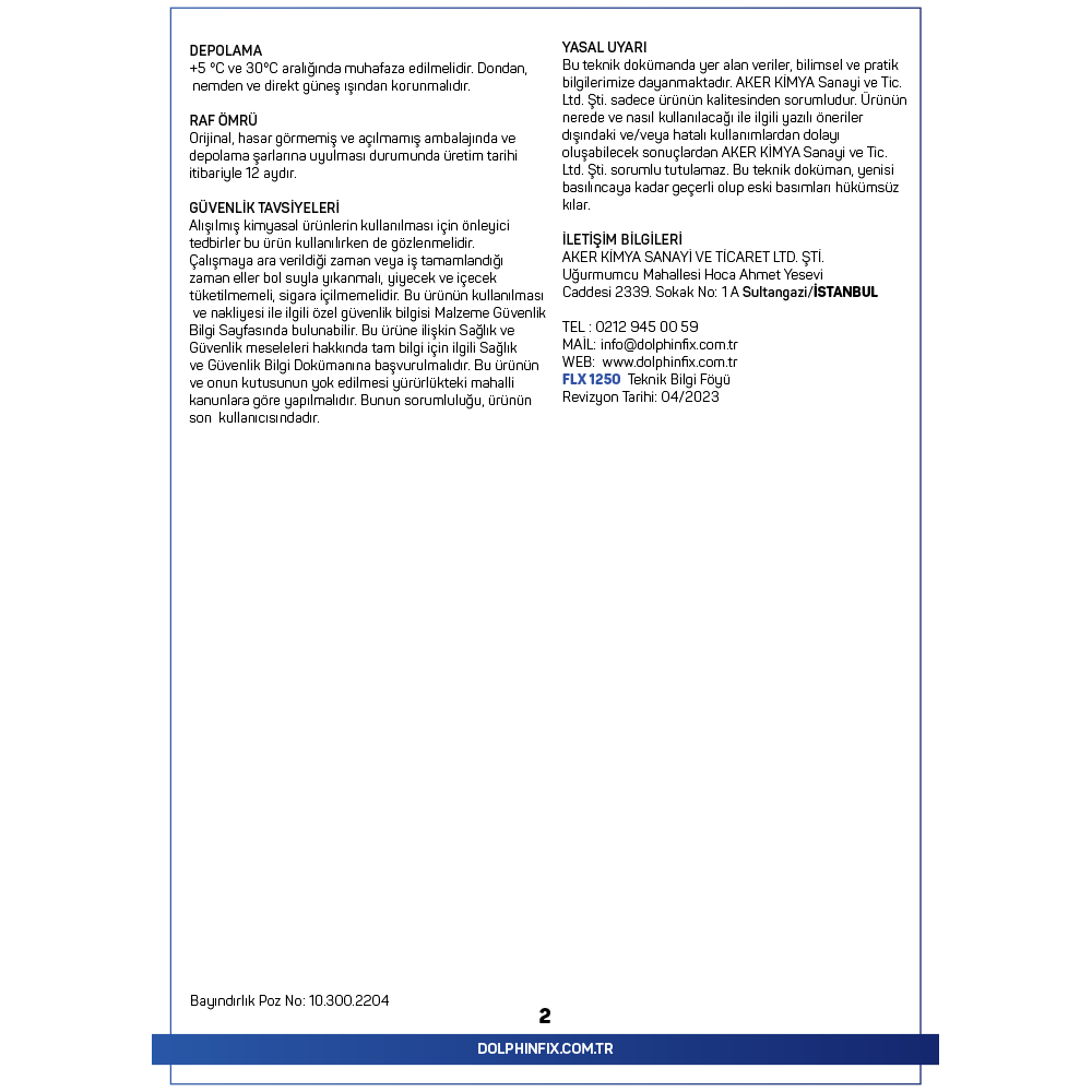TANIMI: FLX 1250, çimento esaslı, yüksek performanslı, kayma özelliği azaltılmış çalışma süresi uzatılmış S1 sınıfı esnek çok yönlü kullanılabilen yapıştırma harcı.