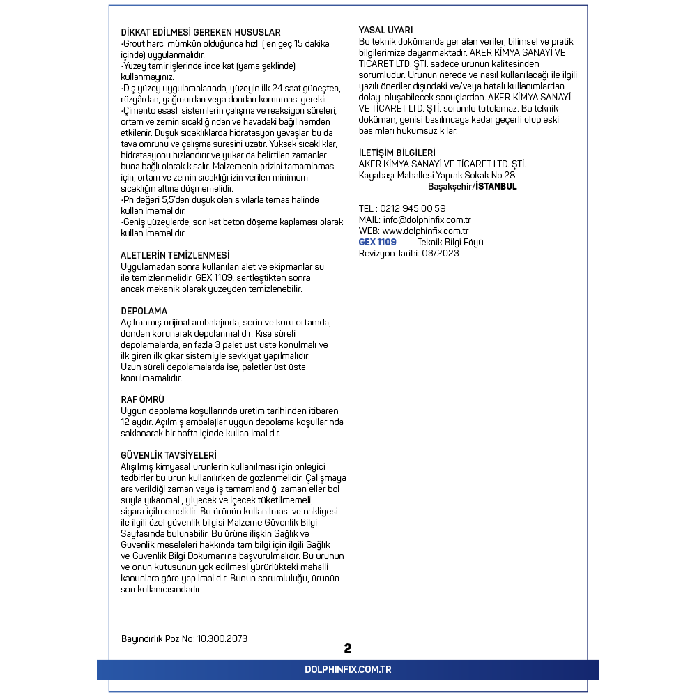 TANIMI: GEX 1109, Yüksek performanslı özel çimento ve karbonatlar ile özel gradasyonlu agregalar içeren mukavemetli, akıcı, büzülmeyen kullanıma hazır özel grout harcı.