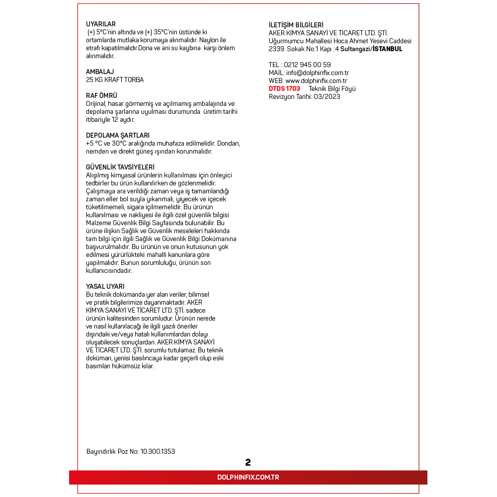 TANIMI: DTDS 1703, Çimento esaslı, polimer motifiyeli, elyaf takviyeli, su itici özelliğe sahip, dış cephede son kat sıva olarak kullanılan ince desenli kaplama malzemesidir.