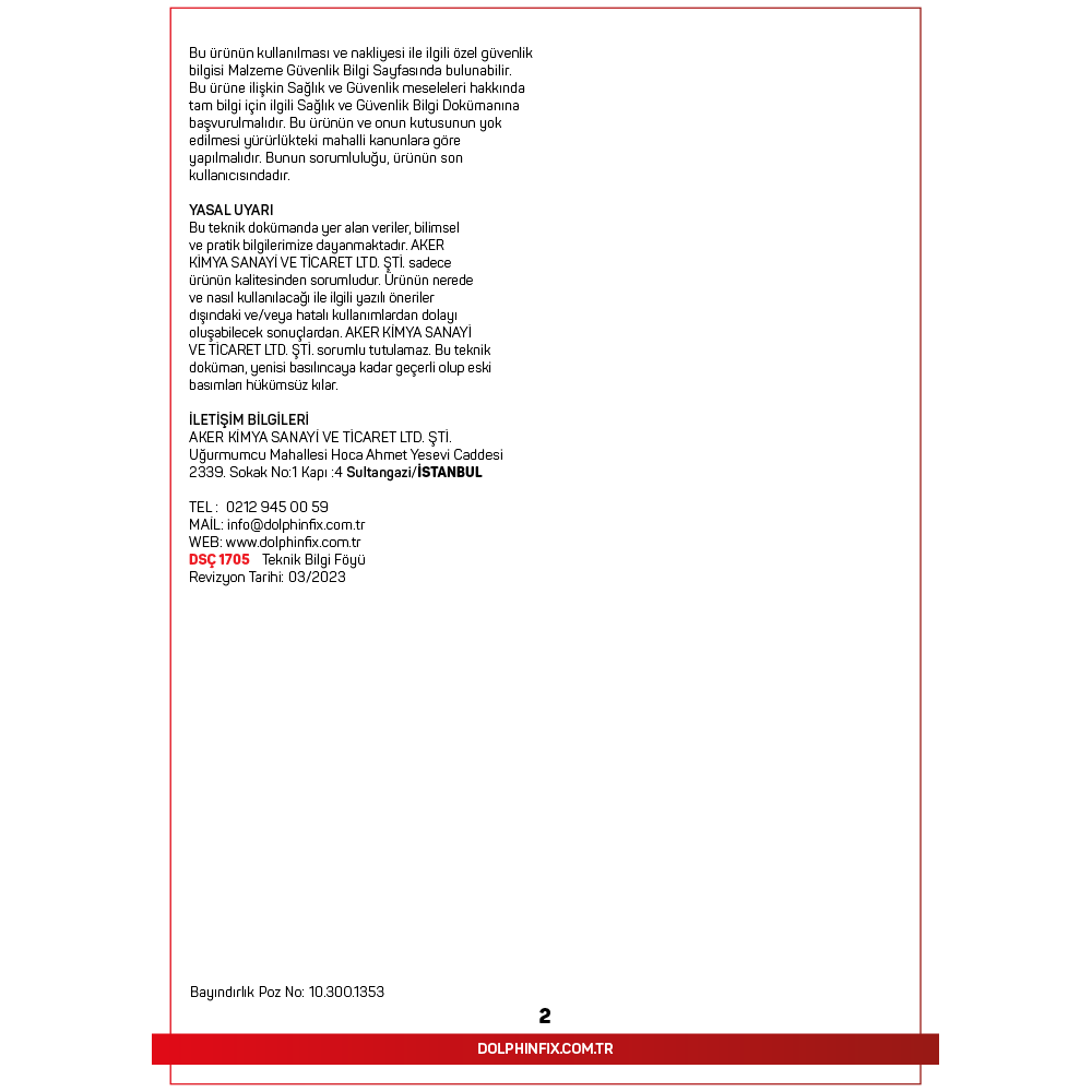 TANIMI: DSÇ 1705, Çimento esaslı, polimer modifiyeli, elyaf takviyeli, su itici özelliğe sahip, dış cephede son kat sıva olarak kullanılan çizgi desenli kaplama malzemesidir.