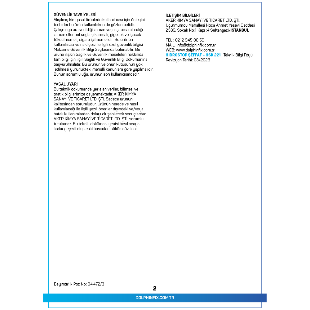 HSK 221 ŞEFFAF – HİDROSTOP ŞEFFAF