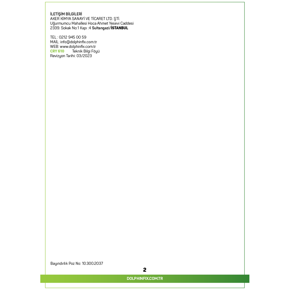 •CRY 610, DOLPHINFİX ürünleriyle uyumludur. Farklı ürünlerle uyumluluğu ispatlamak için ön test gerekmektedir.