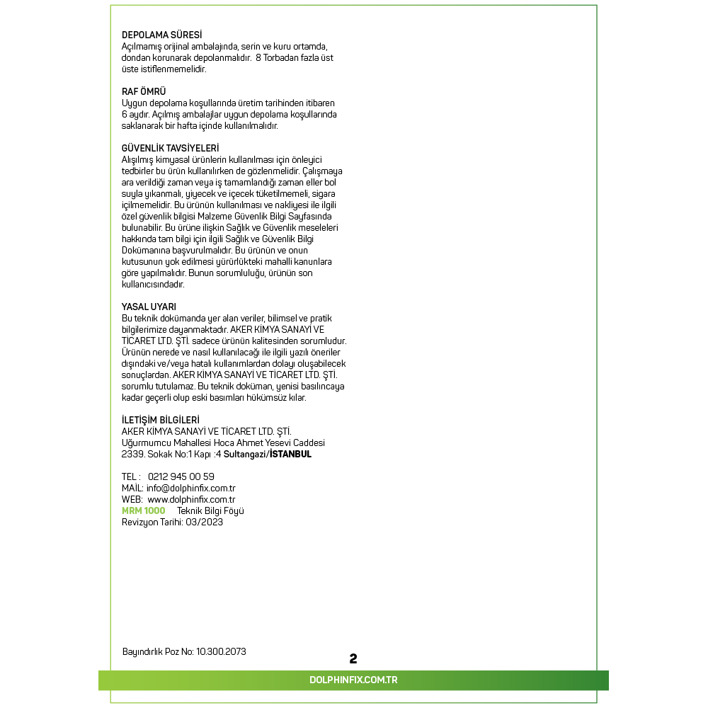 TANIMI: MRM 1000, özel çimentolar, dolgu malzemeleri, bağlayıcılar ve kimyasal katkı malzemeleri kullanılarak geliştirilmiş akıcı bir tamir harcıdır.