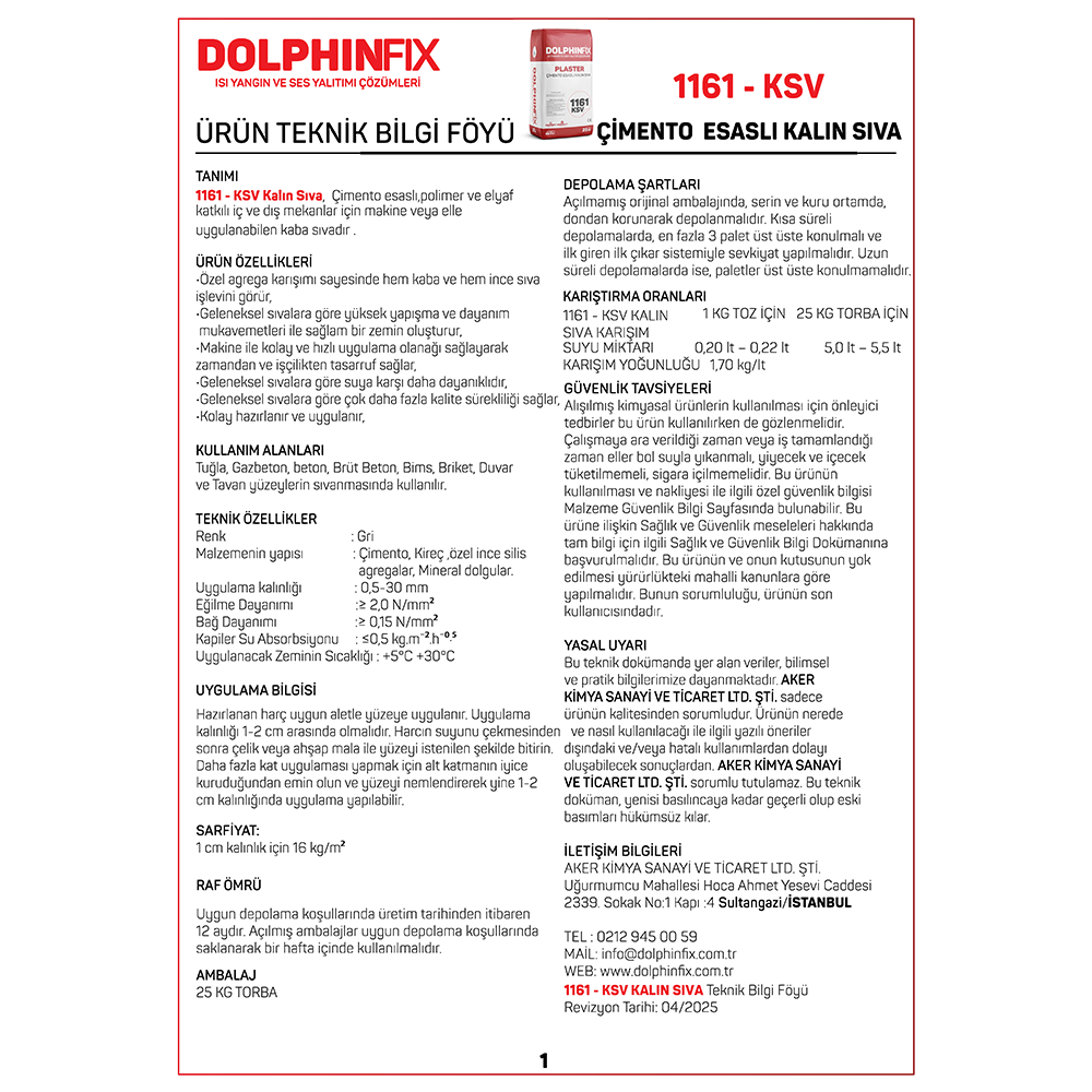 TANIMI : 1161 – Ksv Kalın Sıva, Çimento esaslı,polimer ve elyaf katkılı iç ve dıs mekanlar için makine veya elle uygulanabilen kaba sıvadır .