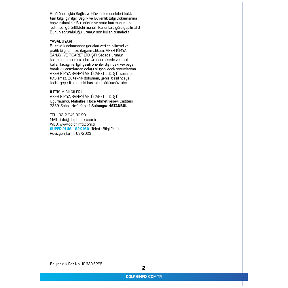 Ürün Teknik özellikleri ve diğer bilgiler için tds belgesini indirmenizi rica ederiz.