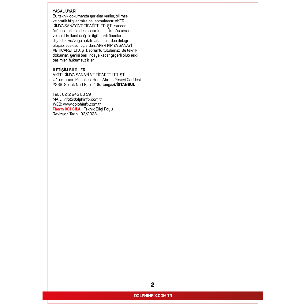Yüzey Hazırlığı: Therm 001 cila, Uygulama yüzeyi, Therm 001 Cila’nın etkili bir şekilde uygulanabilmesi için Therm 003 cephe kaplama Isı Yalıtım Ürünü önceden yüzeye uygulanmış olmalıdır. Yüzeyin kuru, sağlam ve gevşek parçacıklardan arınmış olması gerekmektedir.